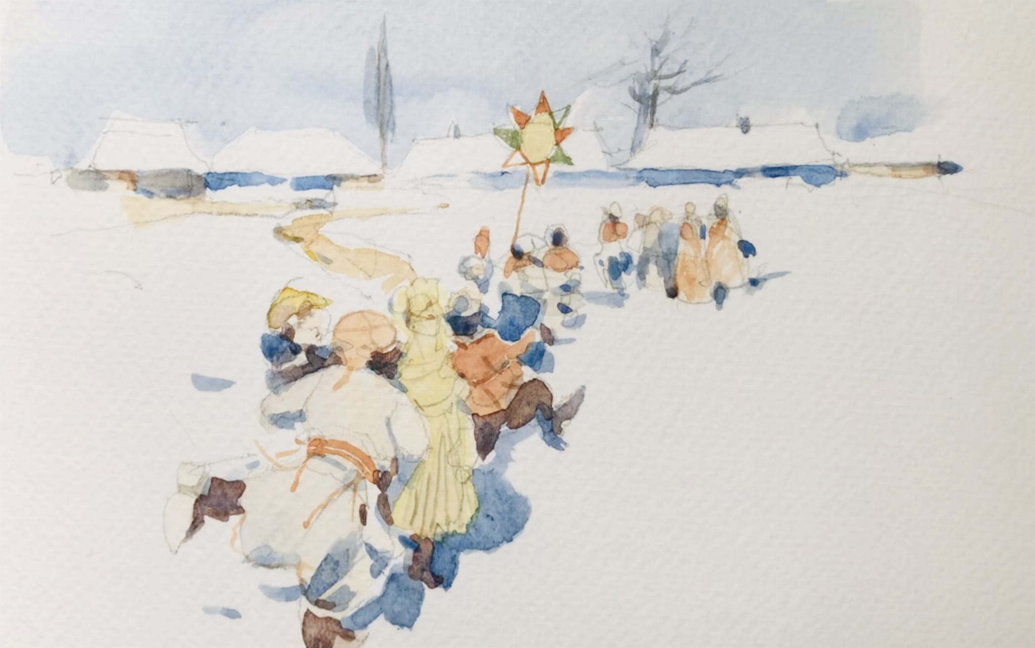 KOLĘDNICY - to nastrojowa lekcja akwareli w świątecznym klimacie. Namalujemy akwarelę inspirowaną grafiką Włodzimierza Tetmajera. DR TOMASZ WEŁNA krok po kroku pokazuje jak namalować pejzaż i postacie. Bardzo prosta lekcja dobra dla wszystkich początkujących.