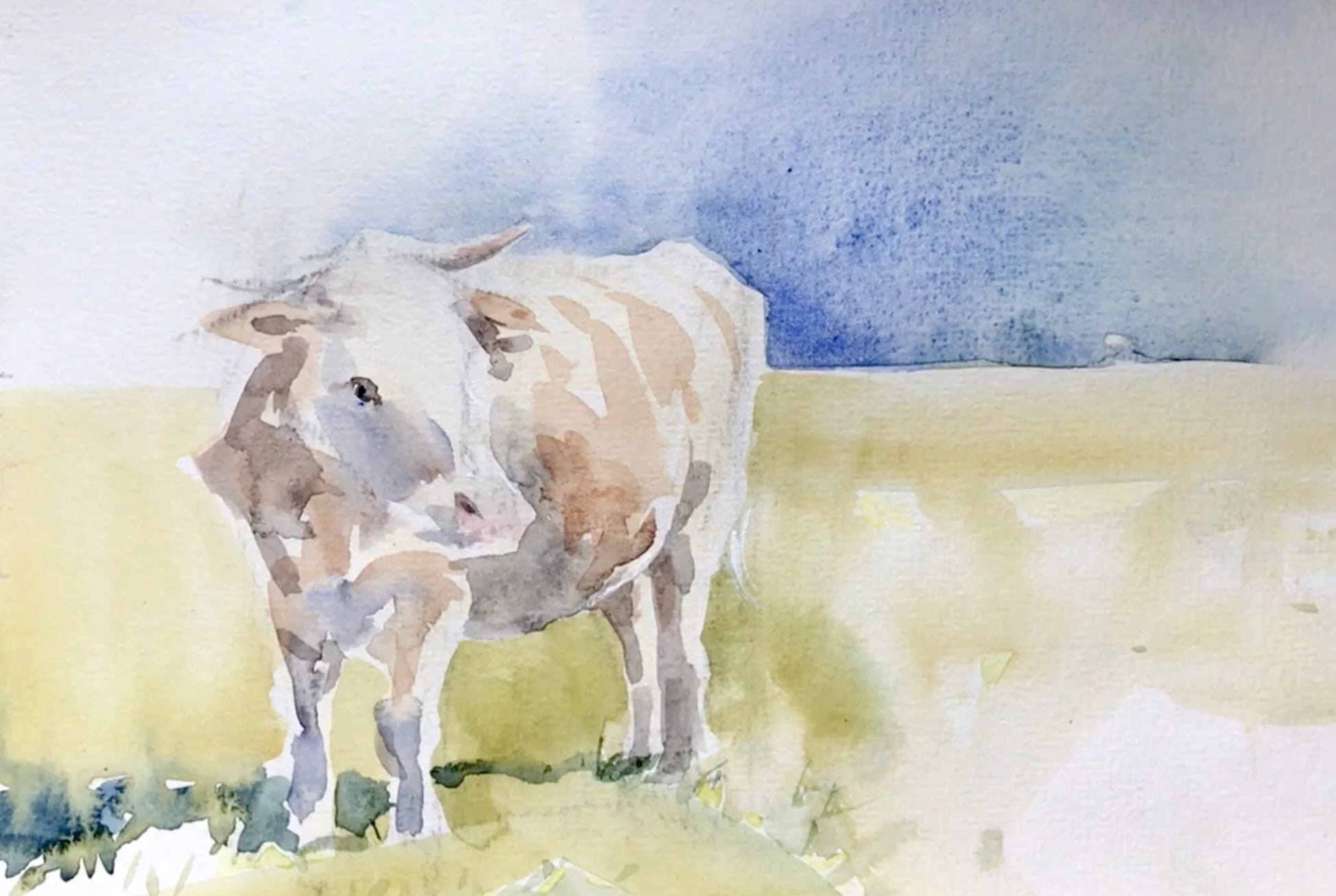 KROWA - lekcja akwareli dla każdego. Sympatyczna krowa spotkana podczas wyprawy w górach. Zapraszam! DR TOMASZ WEŁNA