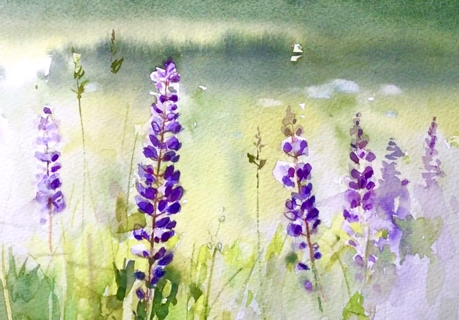 ŁUBINY - lekcja akwareli dla każdego! Krok po kroku zobaczysz jak namalować lekkie i wyniosłe kwiaty łubinu. Poznasz techniki mokre w mokre i na suche. Zaprasza DR TOMASZ WEŁNA