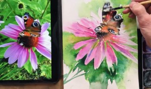 MOTYL - lekcja akwareli bogata w informacje i praktyczne wskazówki: malowanie mokre w mokre, uzyskiwanie różnych barw z mieszania, detale w akwareli.