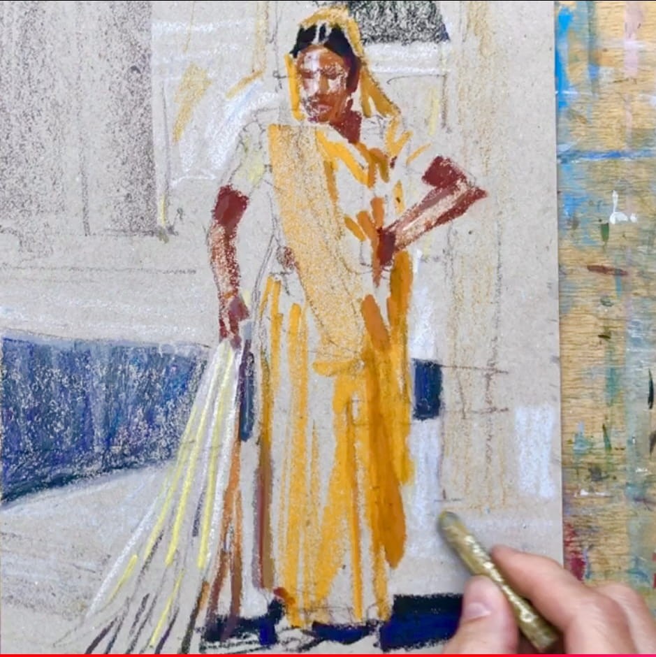 POSTAĆ KOBIETY - lekcja pasteli na której dowiesz się jak namalować pastelami olejnymi postać używając specjalnych śladów i gestu oraz jak ważne jest wykorzystanie barwy tła. Zapraszam- Tomasz Wełna