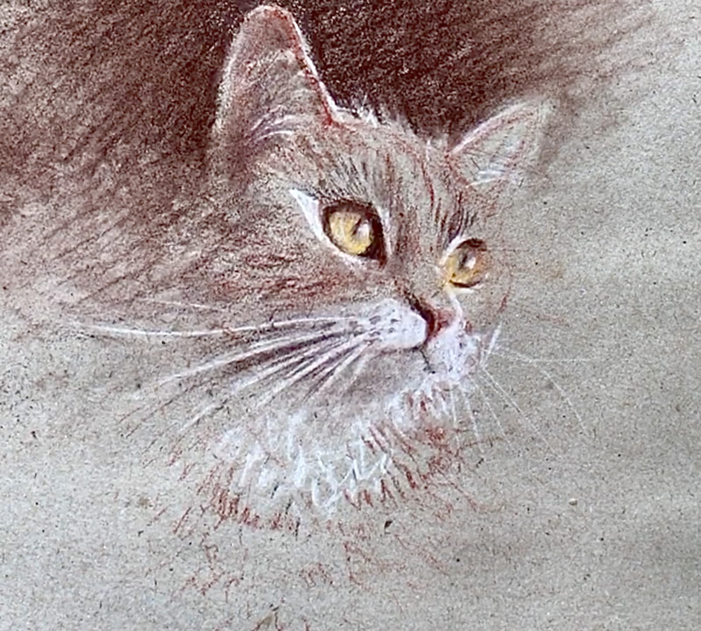 Bardzo przyjemna lekcja, myślę, że kot każdemu się uda. Beżowy papier i te trzy kredki dają zupełnie nowy efekt niż rysunek na białym papierze.
