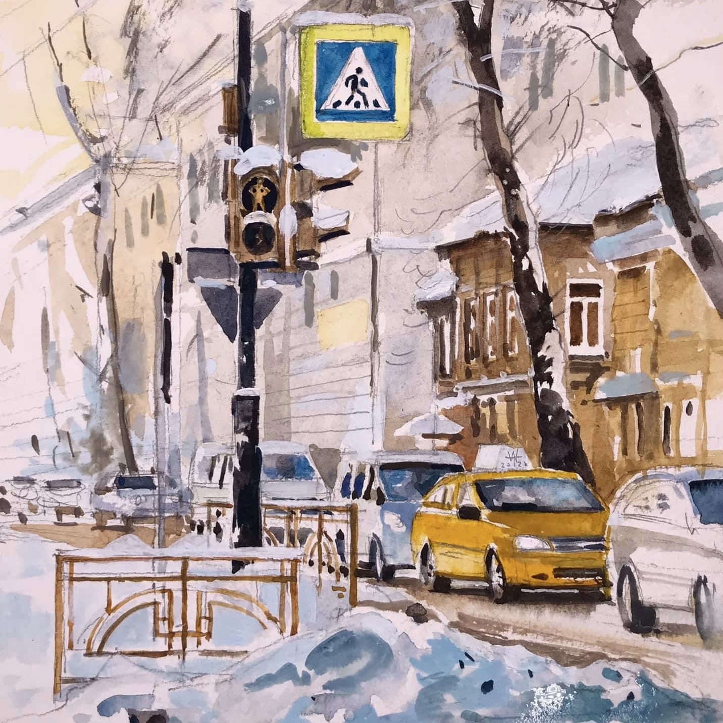 ZIMA NA ULICY W MIEŚCIE - lekcja akwareli