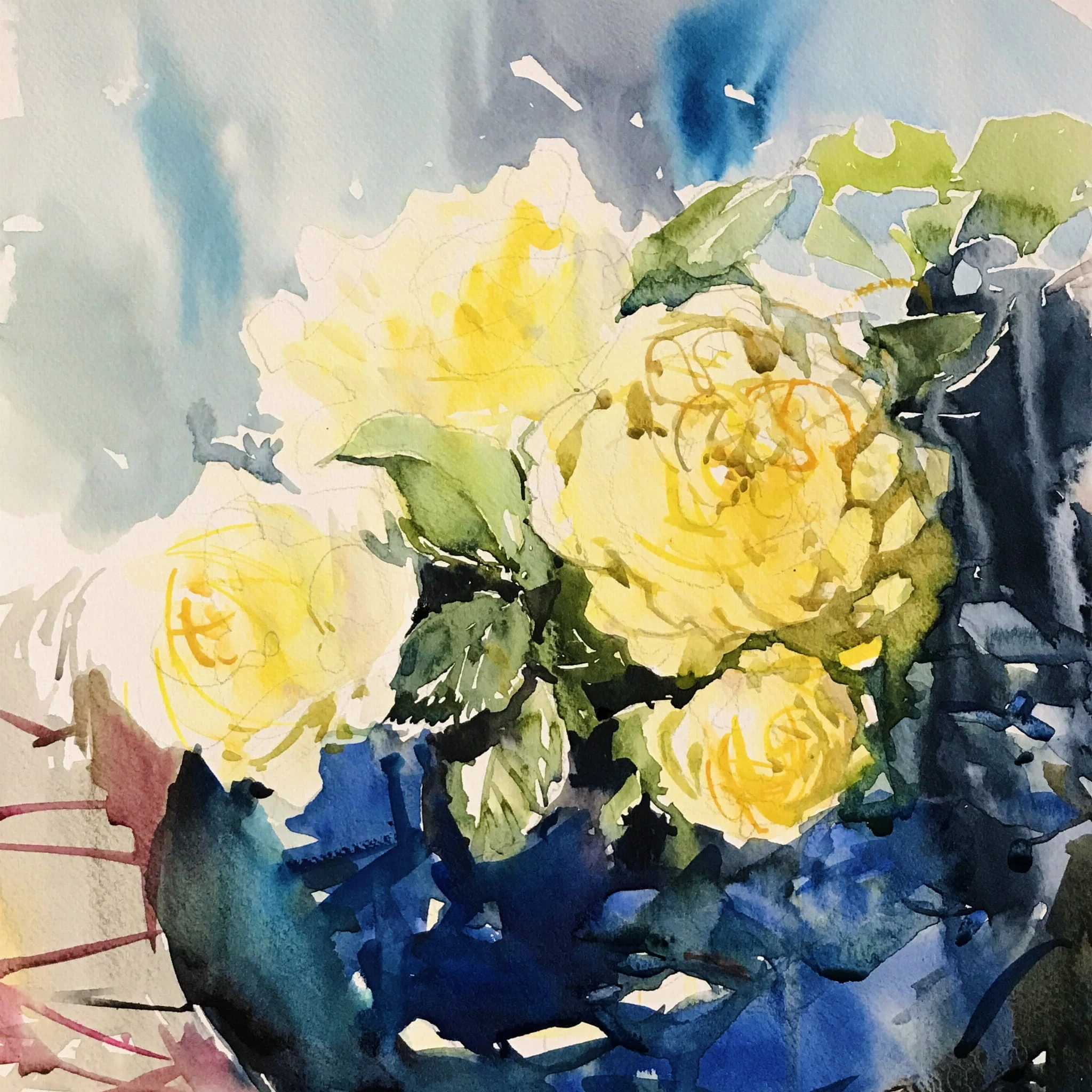 ŻÓŁTE RÓŻE - lekcja akwareli